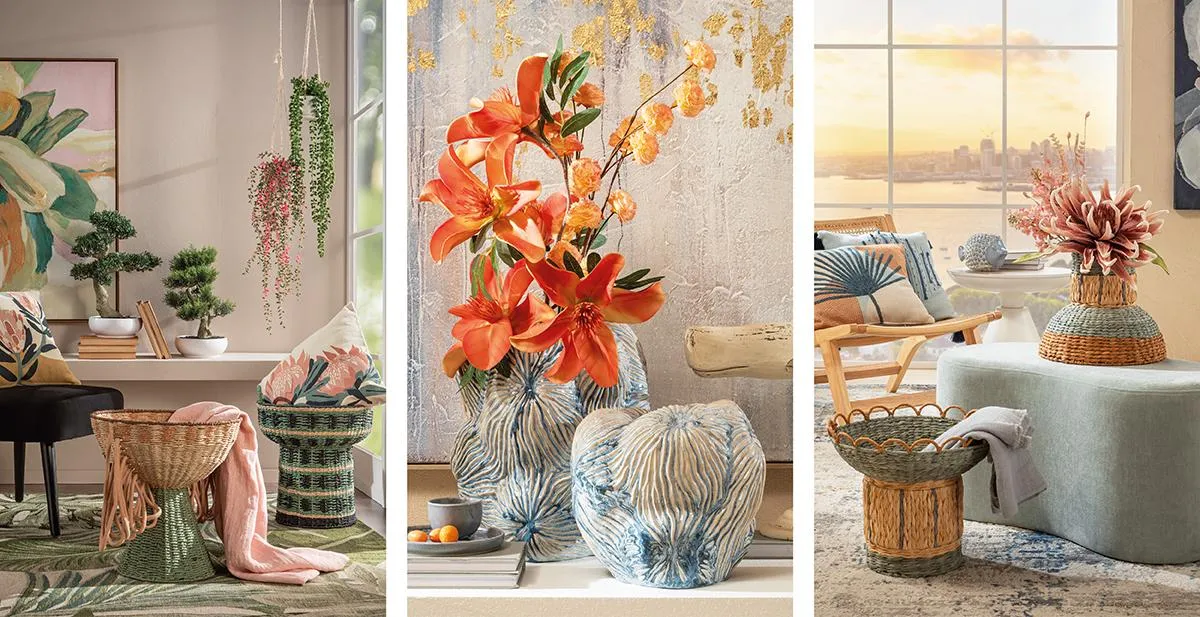 Superfici irregolari, trame naturali e dettagli imperfetti diventano tratti distintivi e si evolvono in chiave contemporanea: cesti in vimini, vasi dalle forme organiche e tessuti a trama grezza decorano ambienti dove l’irregolarità diventa espressione di lusso consapevole.