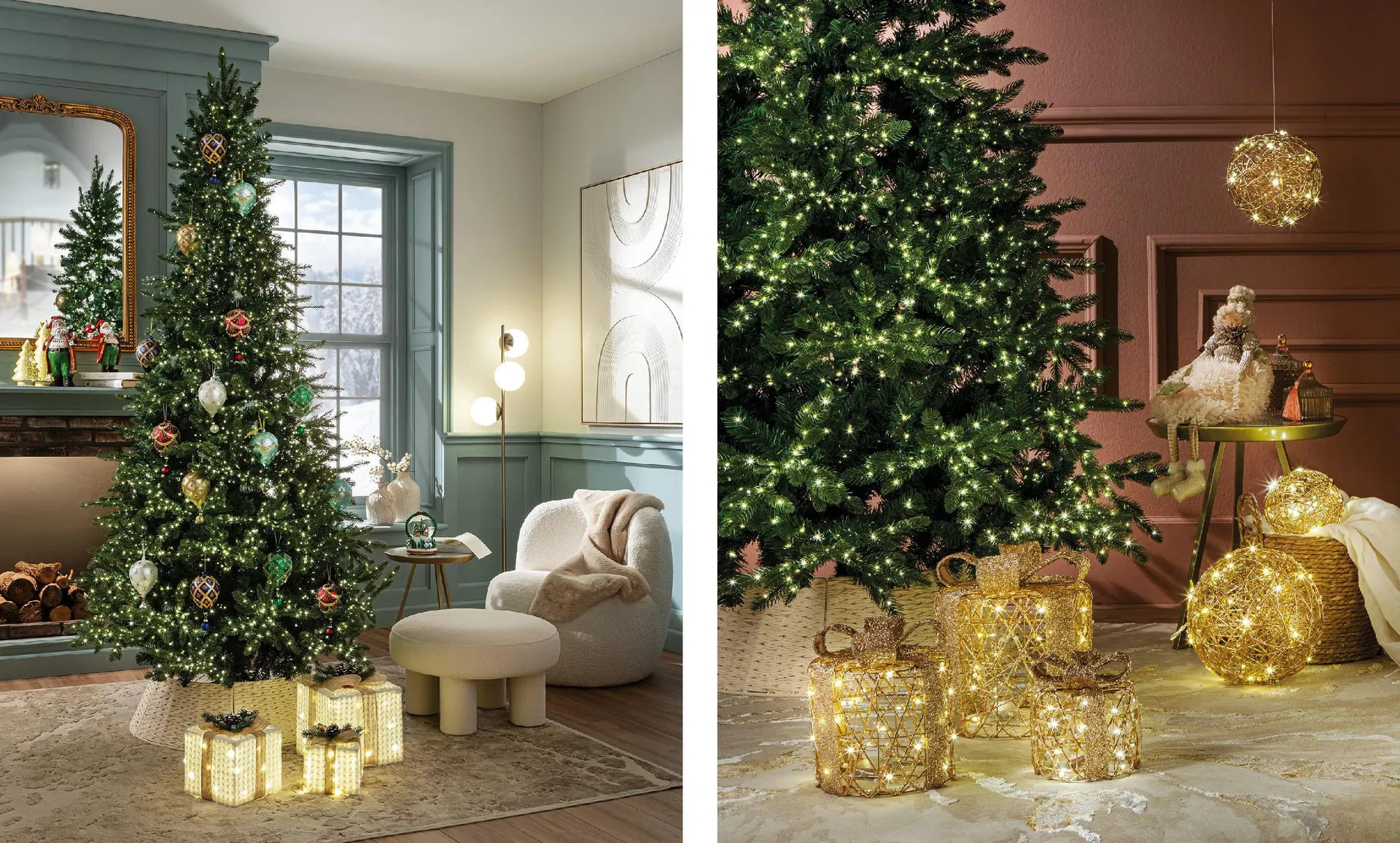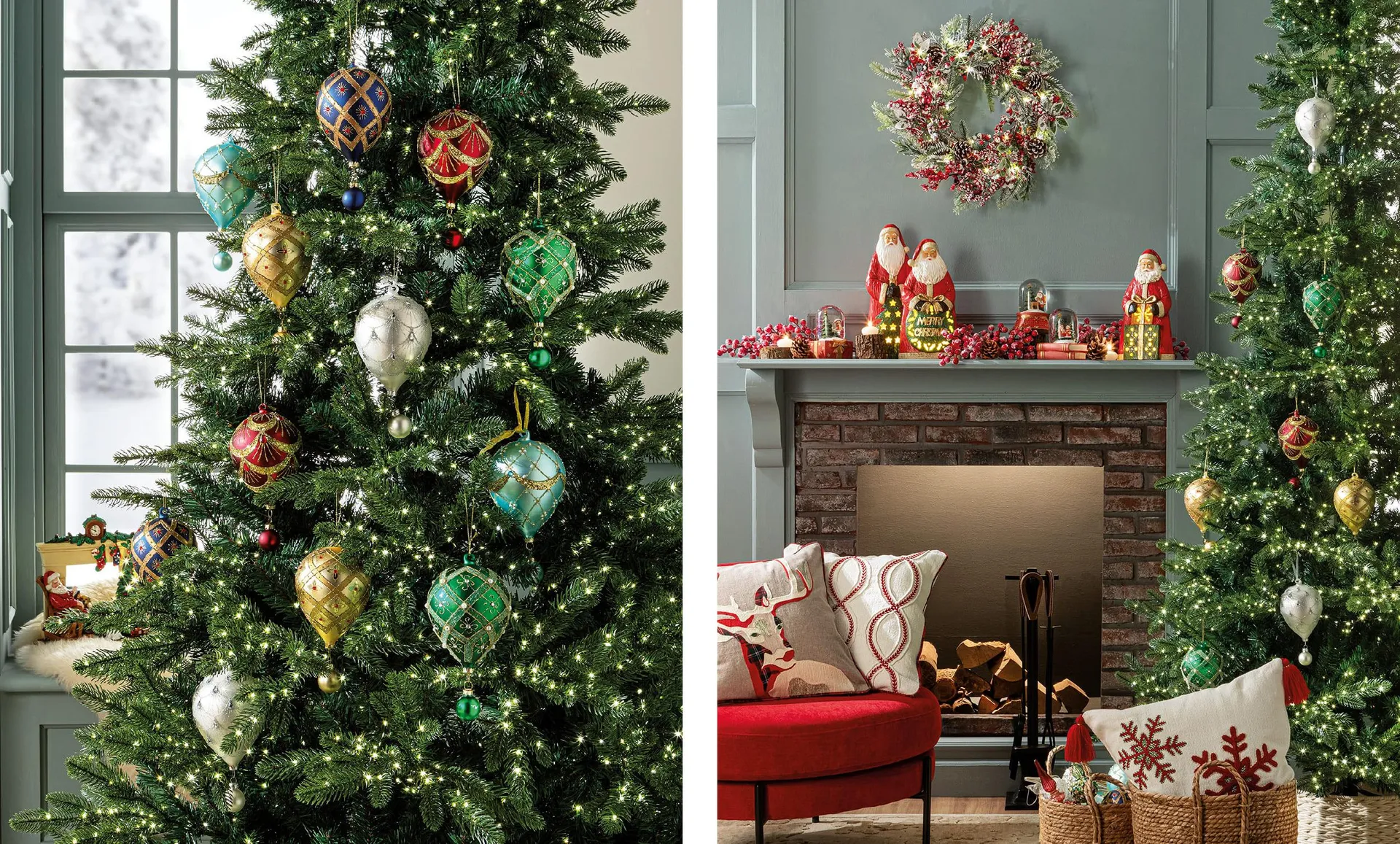 - Chi vuole rendere il Natale un’esperienza visiva e sensoriale di pura meraviglia, in un living che brilla come una sala da ballo sotto un cielo di stelle, può optare per un albero decorato con ornamenti a forma di goccia, sferici e a diamante, impreziositi da dettagli gioiello. Oro, verde smeraldo, blu zaffiro e rosso rubino si combinano per un risultato che richiama i fasti delle grandi corti europee.