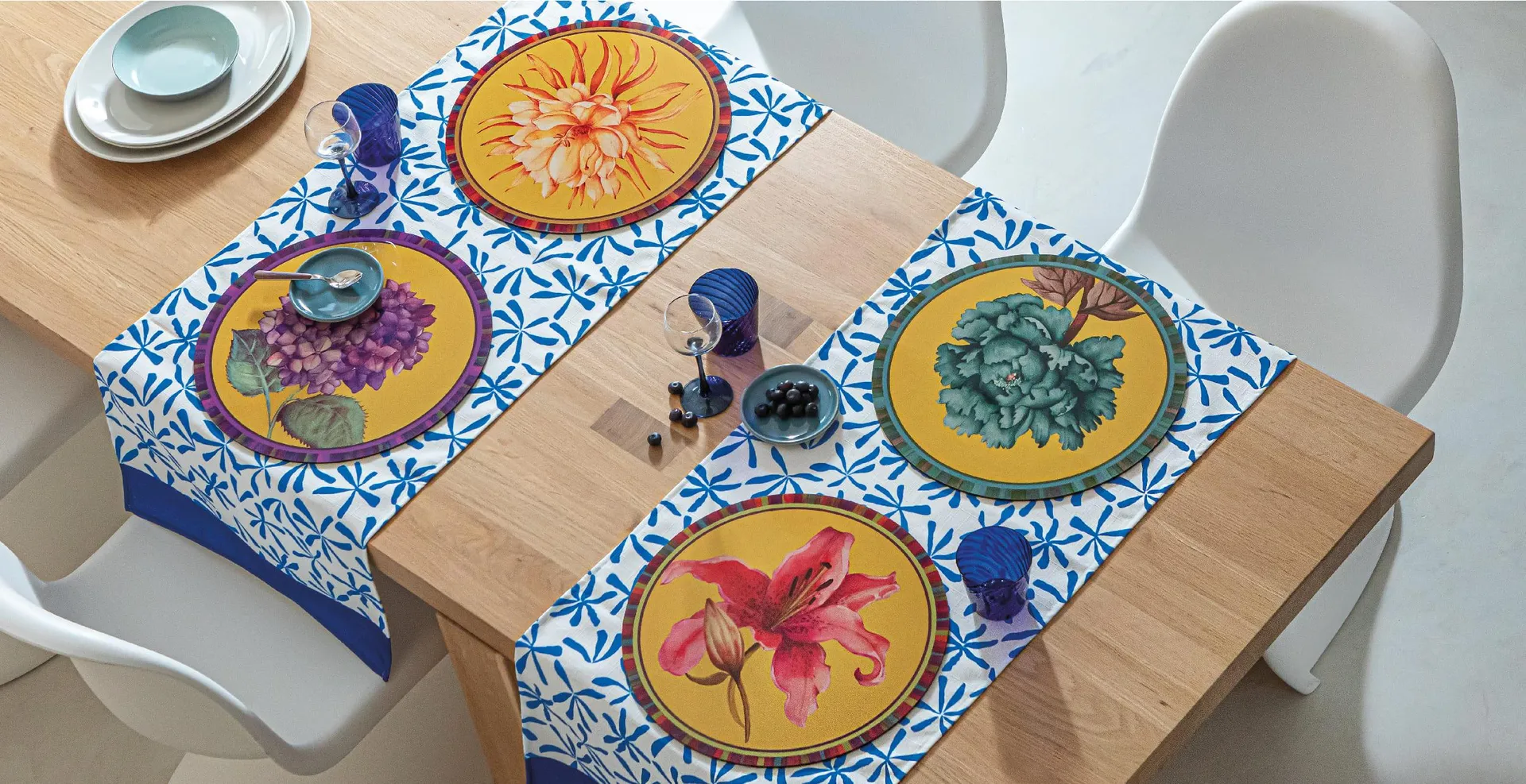 Ogni pezzo è pensato per arricchire la tavola con dettagli che riflettono cura, qualità e un gusto inconfondibile per il bello. Le trame dei tessuti raccontano una storia di qualità superiore, i pattern, che spaziano dai delicati fiori ai moderni disegni geometrici, portano un tocco di raffinatezza che cattura lo sguardo. I colori vibranti e le sfumature sofisticate sono selezionati per creare un equilibrio visivo che impreziosisce ogni ambiente, facendo risaltare la bellezza intrinseca di ognuno di questi complementi.