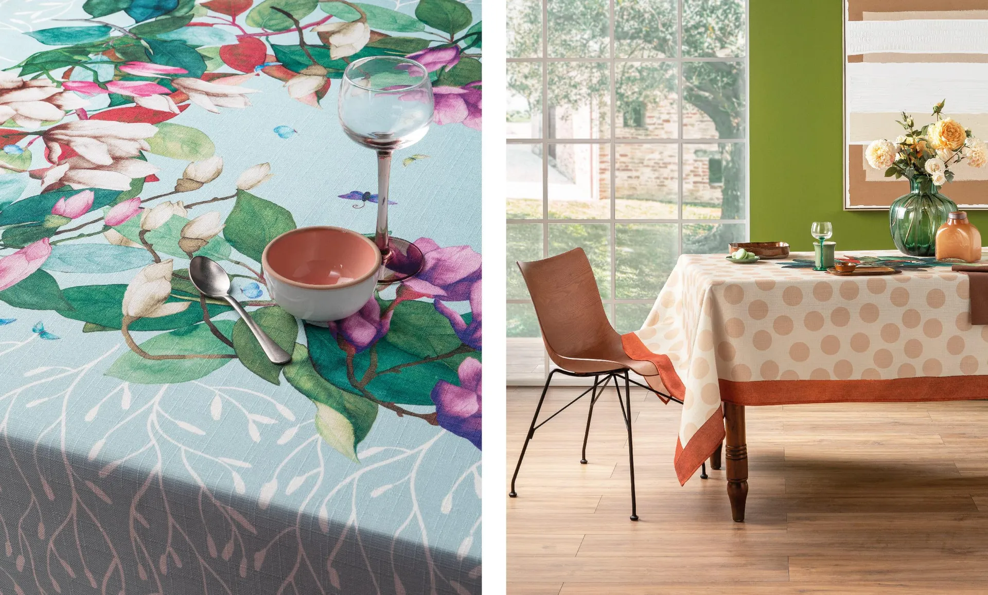 In particolare le tovaglie, realizzate in filato antimacchia e idrorepellente, sono morbide al tatto e incredibilmente pratiche, combinando funzionalità e stile in modo impeccabile. Disponibili in una gamma di dimensioni, da quelle per piccole tavolate intime a quelle per grandi pranzi conviviali, queste tovaglie decorano ogni tavola con raffinati motivi che spaziano dai delicati fiori ai design più moderni e astratti.