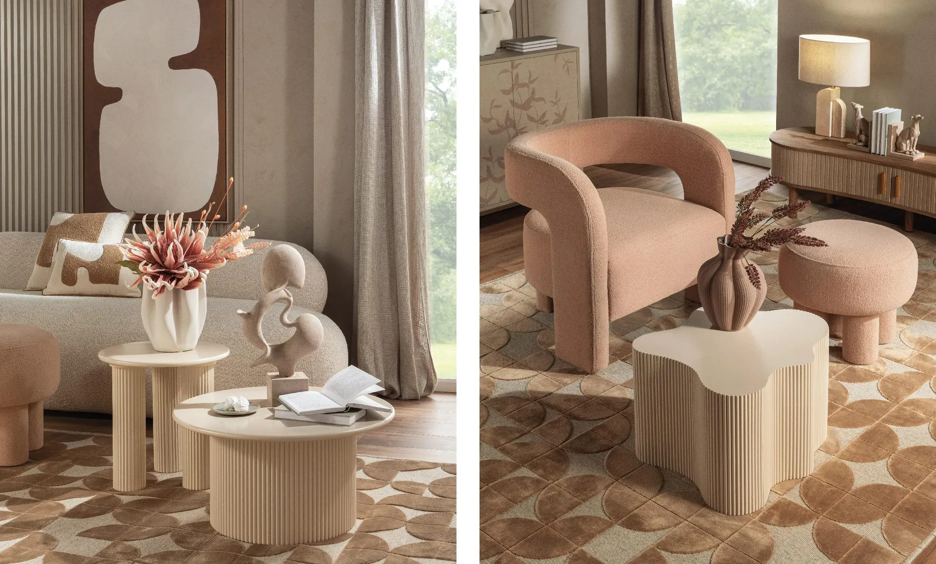 Tavolini e consolle non sono semplici superfici d’appoggio, ma veri e propri punti focali che orchestrano lo spazio con eleganza misurata.