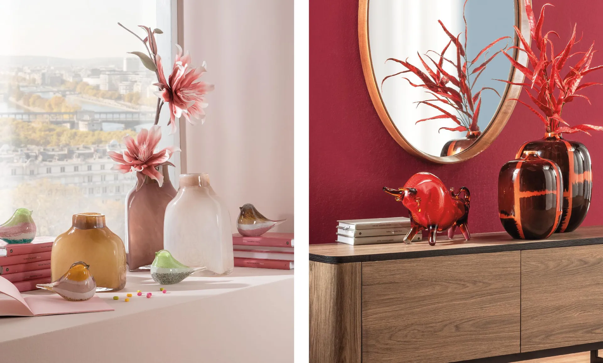 Possono essere pesci dalle cromie audaci, piccoli uccellini di vetro, leggeri come soffi di vento o gechi scintillanti; o ancora tori dalla silhouette scultorea, dolci stelle marine o meduse eteree… Gli animali usati come articoli decorativi per la casa aggiungono una dimensione poetica agli interni, grazie al loro carattere di narratori silenziosi di storie.