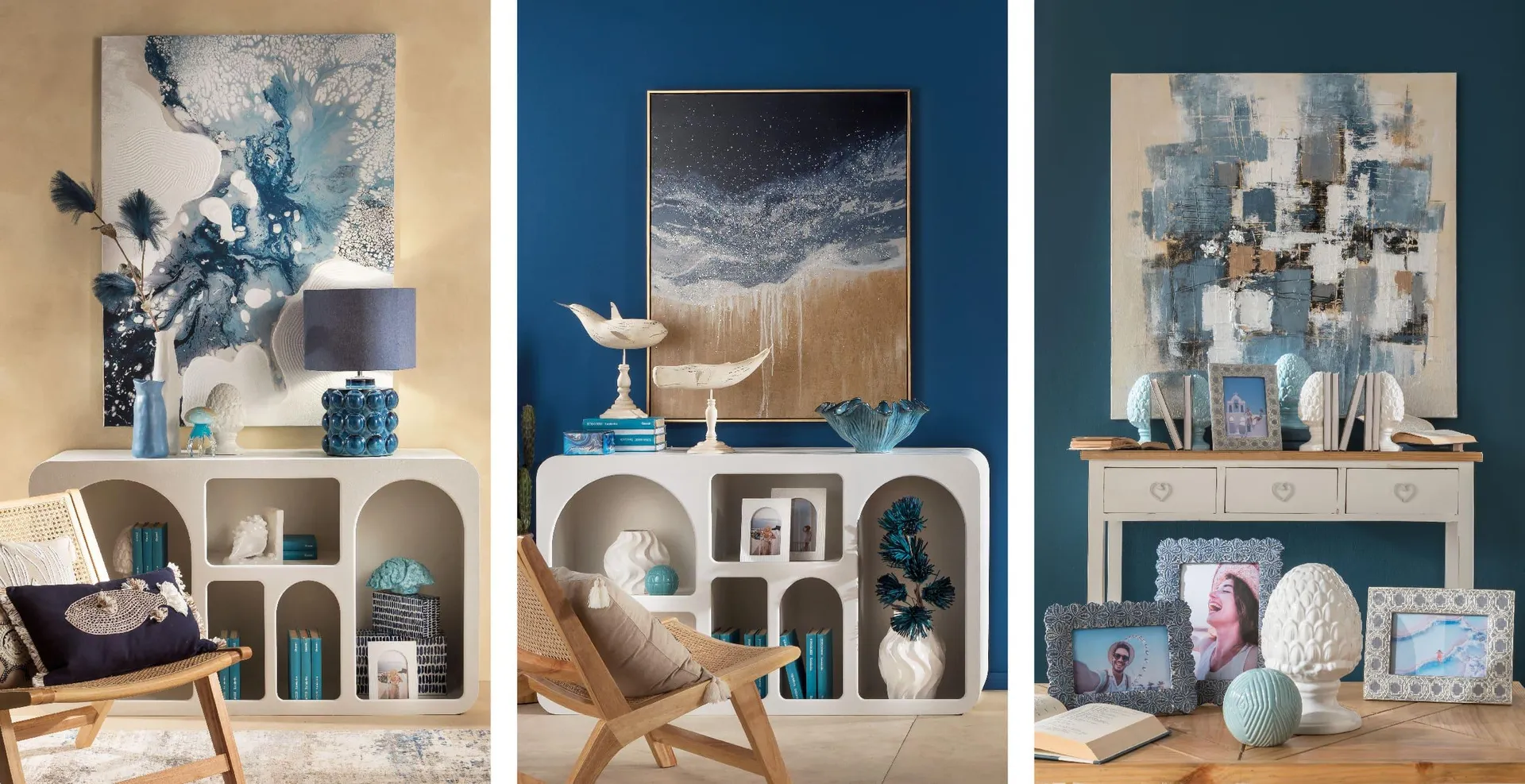 Questi quadri, con le loro narrazioni visive e le loro texture affascinanti, non sono semplici decorazioni, ma veri e propri protagonisti dello spazio, capaci di evocare le sensazioni di pace e serenità associate al mare. Così, ogni opera contribuisce a creare un ambiente unico, dove l’eleganza si intreccia con l’armonia naturale e ogni dettaglio parla di raffinata sensibilità estetica. Onda, dopo onda.