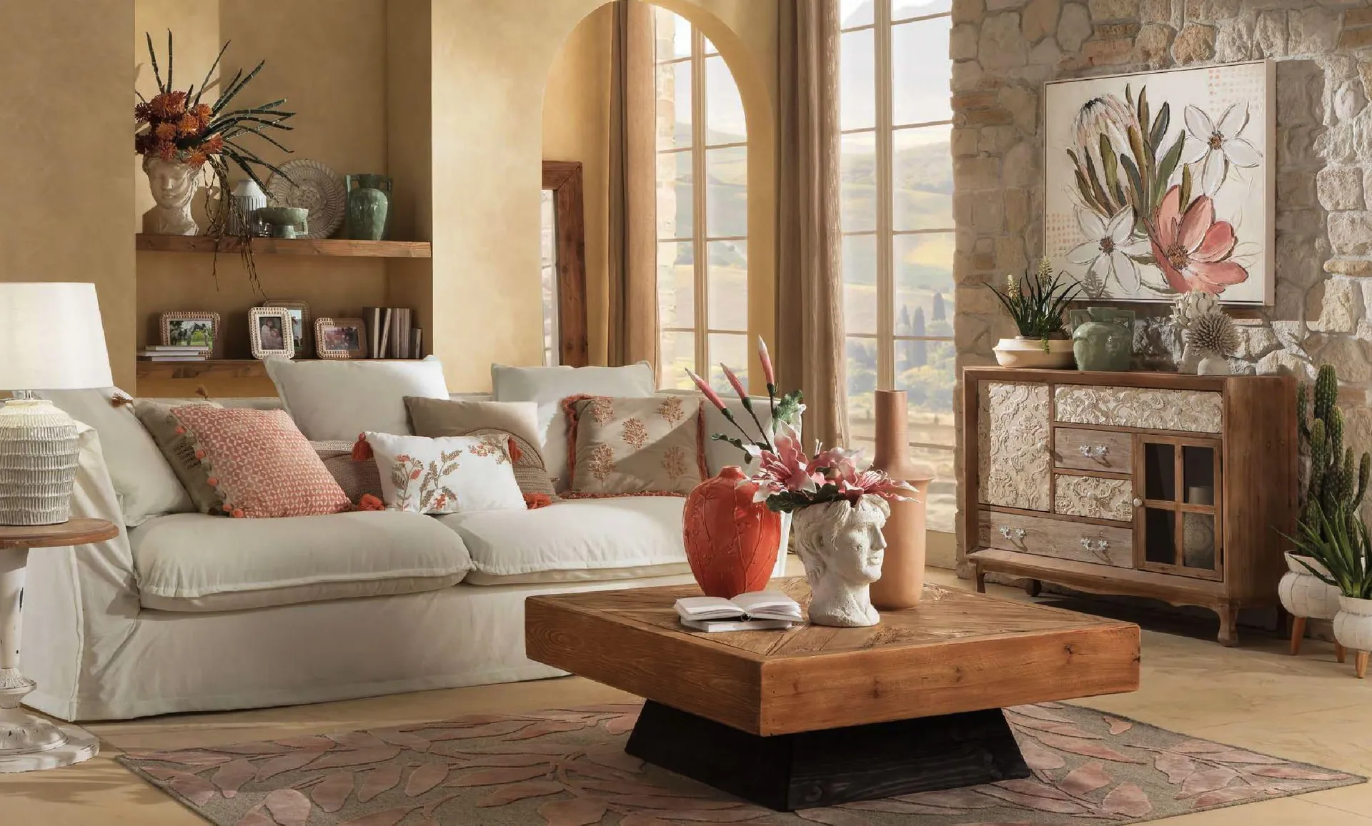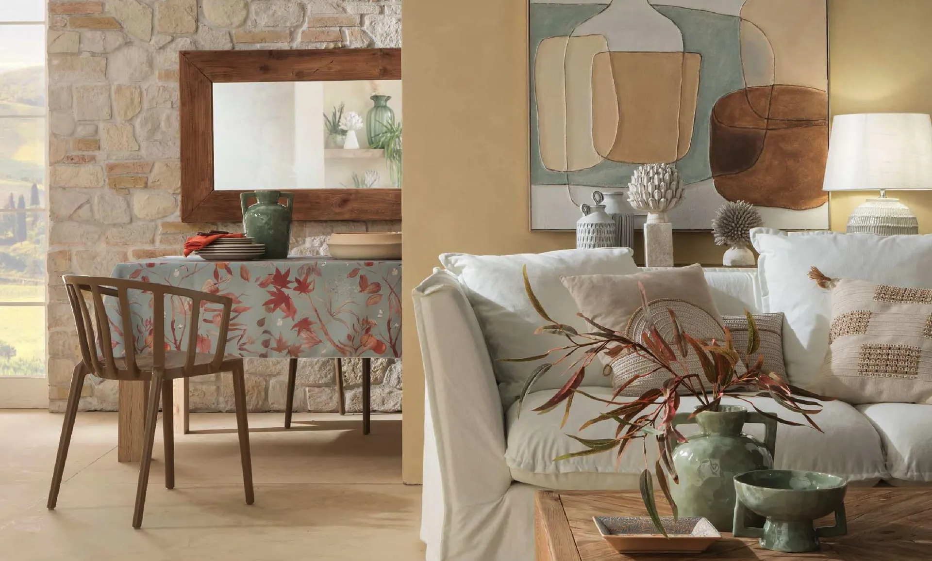 Queste Earth Tones abbracciano una vasta gamma di colori, dal caldo terracotta al verde salvia, dal sabbia dorata al grigio pietra, fino al marrone. Una varietà che permette una flessibilità straordinaria nella progettazione degli interni e nella definizione degli accessori d’arredo, senza mai perdere l’intrinseca capacità di infondere calore e comfort agli ambienti.