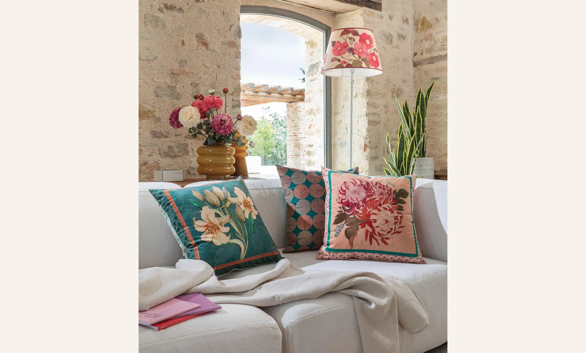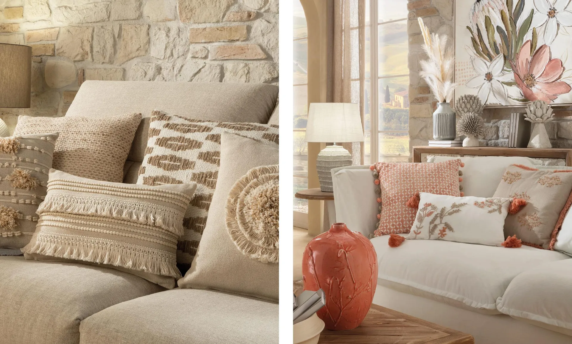 Una volta definita l’ossatura del soggiorno, è la stratificazione a determinarne il carattere. Il country chic non è un esercizio di accumulo, ma un lavoro di sovrapposizioni controllate. Ogni livello deve essere capace di aggiungere complessità senza generare confusione.