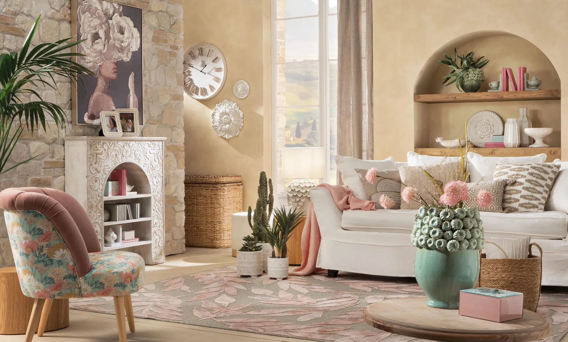 Un soggiorno country chic convincente prende forma a partire da tre elementi fondamentali, capaci di stabilire la scala dello spazio e di dare coerenza all’intera composizione.