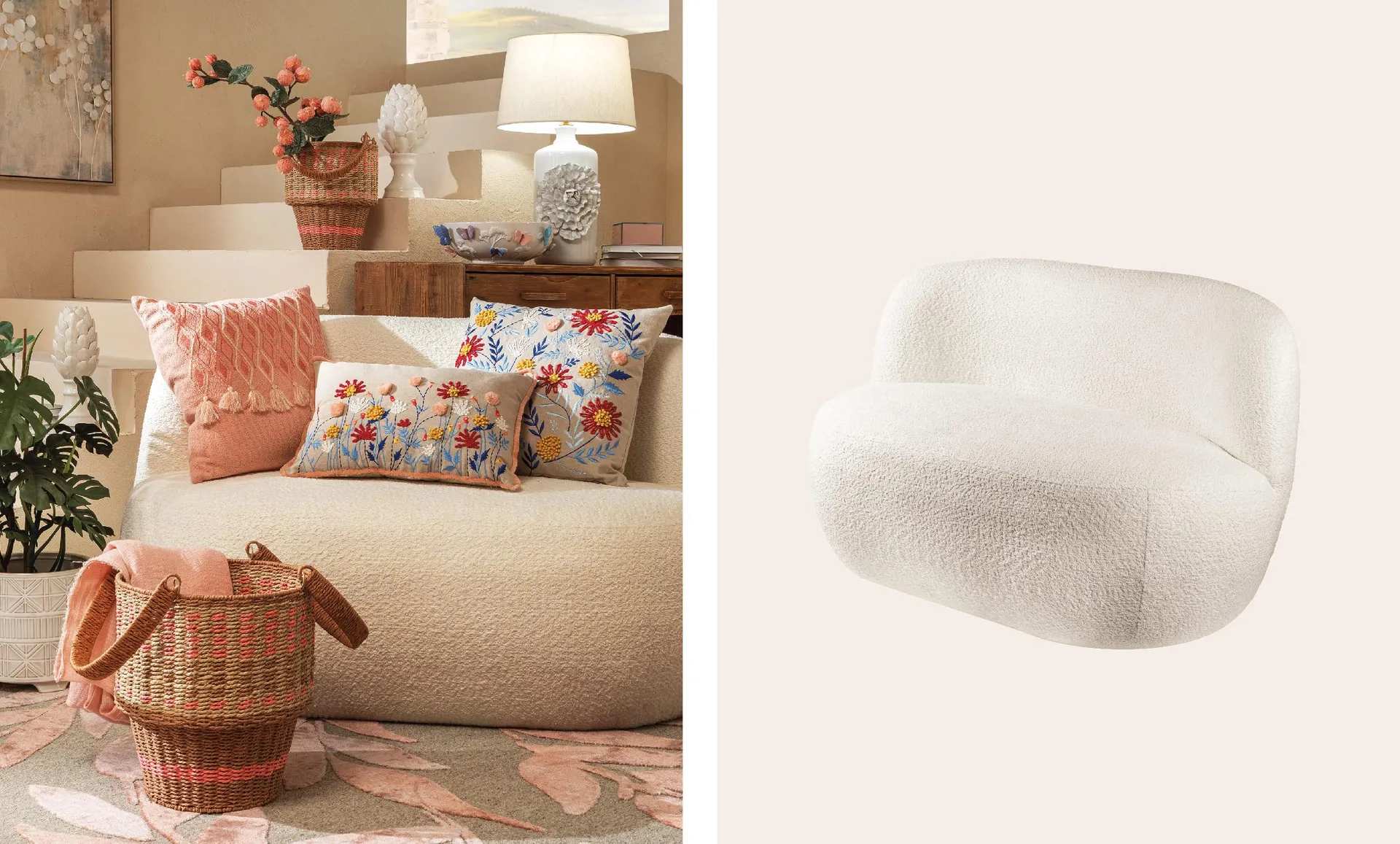 Legni a finitura opaca, superfici a poro aperto, intrecci naturali, ceramiche non smaltate: in questa fase, il progetto si radica nella fisicità degli oggetti. È il livello che stabilisce la temperatura dell’ambiente e ne definisce la solidità visiva.