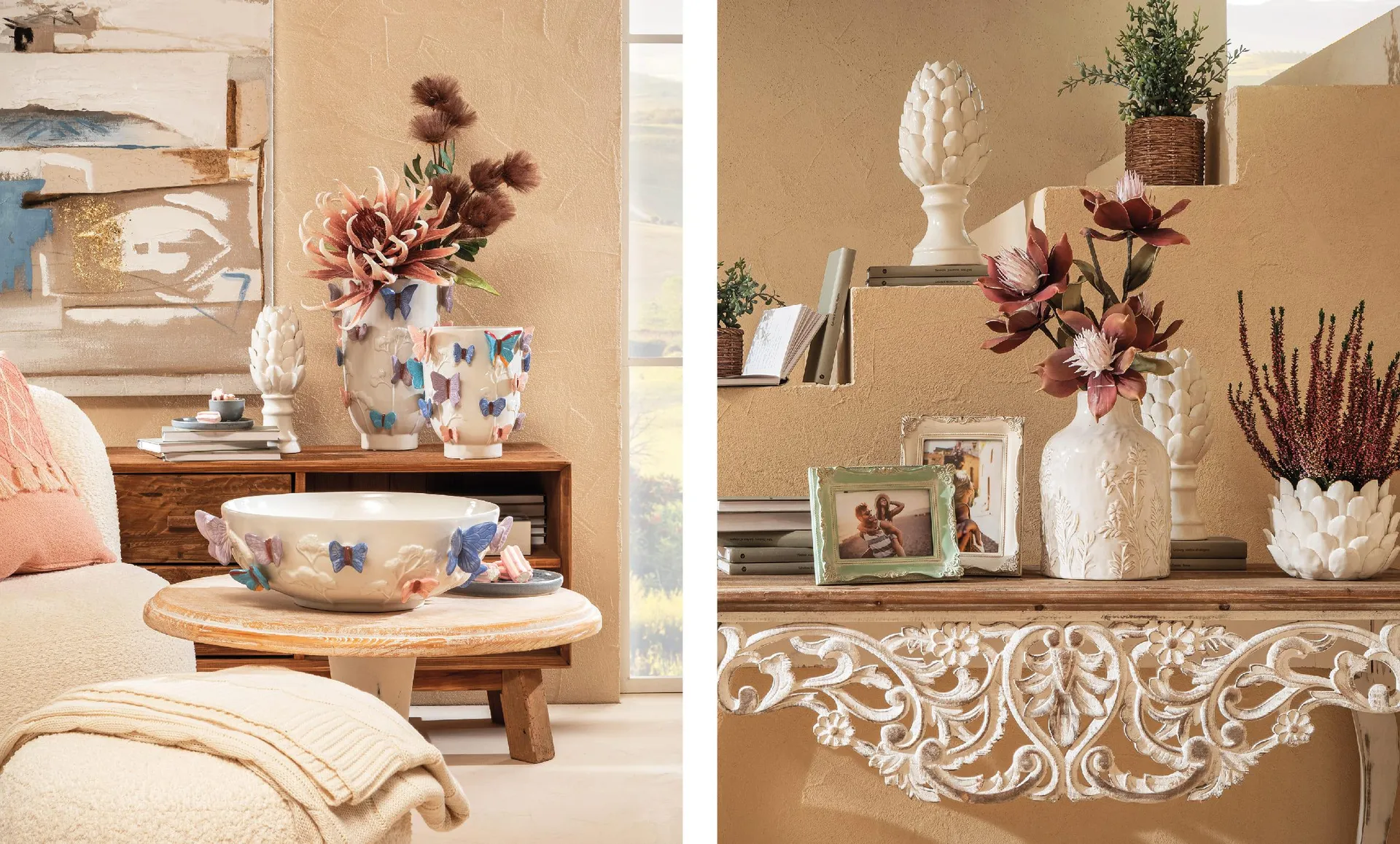 Il loro fascino sta proprio nel gioco tra materia e poesia che li rende perfetti sia per accogliere fiori secchi o artificiali dalle nuance naturali, sia per essere usati da soli, come oggetti scultorei.